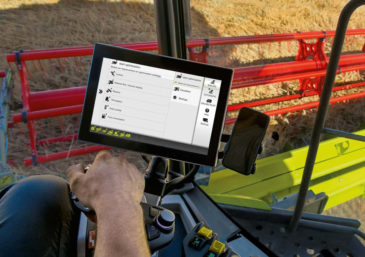 - Claas Cemos Dialog, système d‘optimisation interactif des performances des moissonneuses batteuses.
