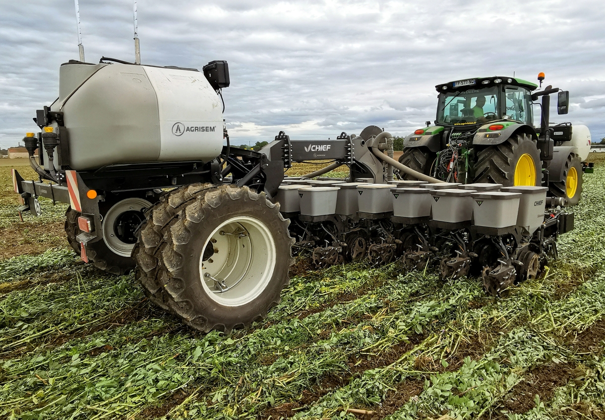 Pour la fertilisation, Agrisem a prévu plusieurs formules de positionnement de l’engrais par rapport à la graine, en liquide ou en solide, avec plusieurs produits en simultané. Enfin, le constructeur revendique « une large gamme d’accessoires, de châssis et d’équipements de fertilisation ». En résumé : des châssis de 3 à 12 m, 40 cm minimum entre rangs, poutre extensible, version spéciale semis direct, etc. Des microgranulateurs seront également proposés à court terme. Un premier aperçu de ce nouveau semoir était d’ailleurs visible en mai à la journée MécaElevage. Il faisait la paire avec un strip-till. Un appareil qui évolue lui aussi chez Agrisem. Son StripCat accueille ainsi : parallélogramme renforcé, élément rallongé, incorporateur de lisier à deux profondeurs, porte à court disponible, nouveau kit de semis de colza, etc.