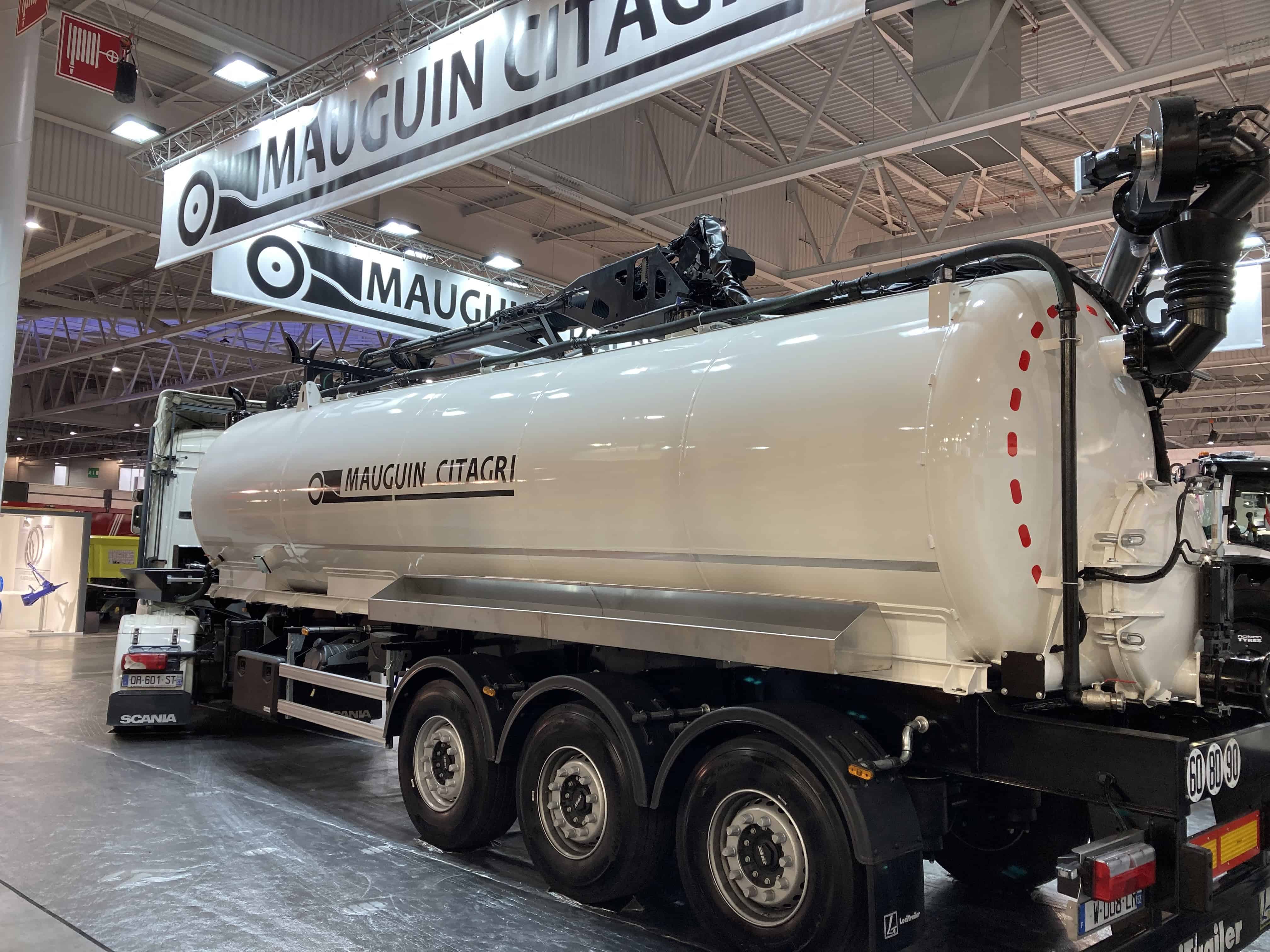 Les opérateurs de transport de lisier commencent à jouer la carte du blanc, à l’image de camion Mauguin Citagri exposé au Sima.