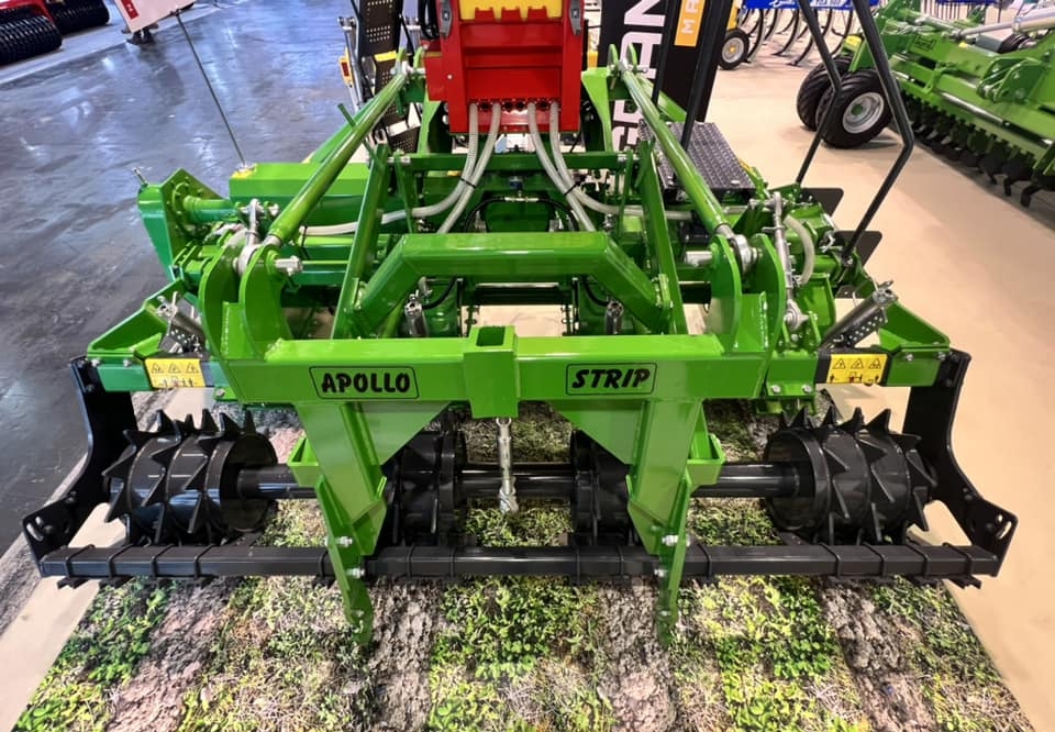 Mais Stecomat propose d’autre part un strip-till rotatif, en fait une fraise rotative particulière. Cette machine de chez Valentini, visible quant à elle au Sima 2022, travaille des bandes de 22 cm de largeur, pour 5 à 18 cm de profondeur. Une dent fissuratrice pouvant descendre à 30 cm est d’autre part placée devant le rotor. Un attelage permet d’y associer un semoir. Cette architecture se retrouve chez Oekosem (Suisse), mais avec une dent fouilleuse différente.