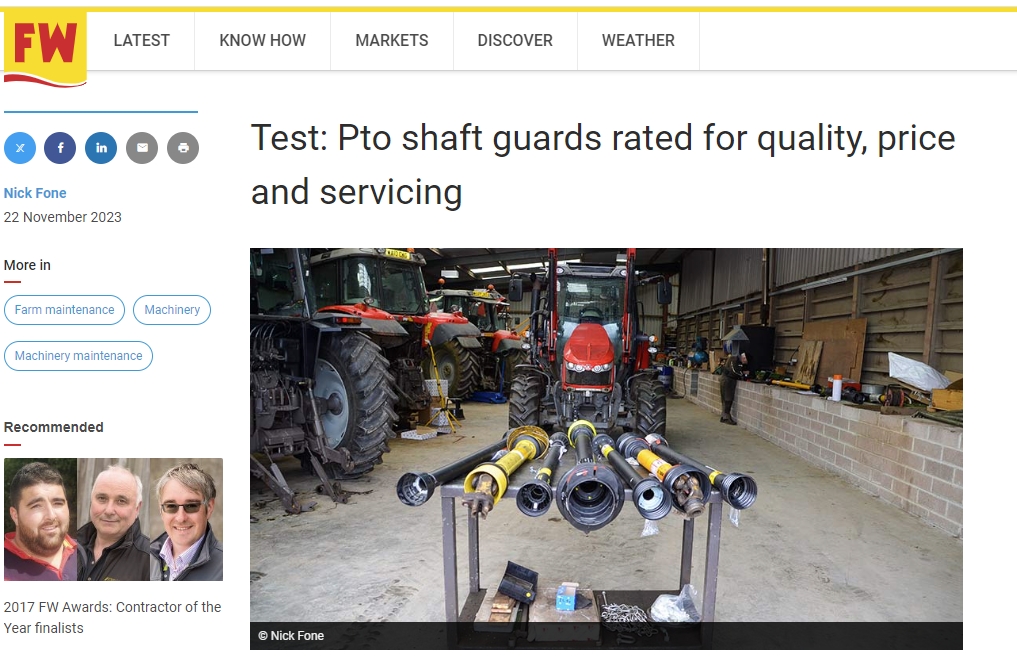 Nos confrères anglais de Farmers Weekly ont réalisé un comparatif de protections d’arbres à cardan de remplacement. Ils constatent comme on peut le faire en France que ces organes sont source d’accidents graves. Mais également qu’ils coûtent cher. Ainsi, au total, sept marques de protection de cardan étaient en comparaison : Bare-Co, Bondioli & Pavesi, Comer, Go-Part, Sparex Gardloc, Walterscheid et Weasler.
