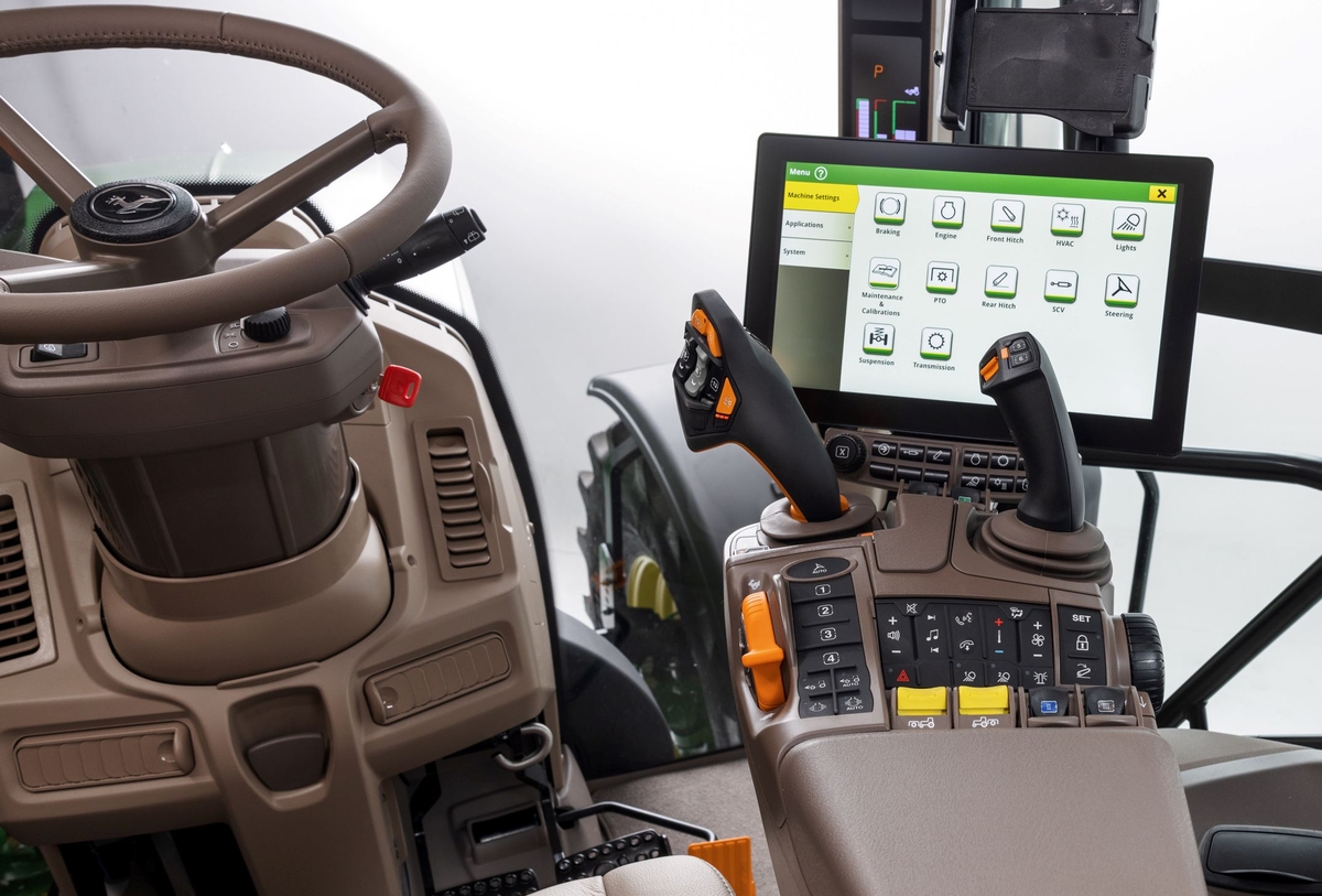 A partir de 2024, les tracteurs John Deere à 6 cylindres des séries 6R, 7, 8 et 9 recevront la nouvelle console CommandCenter G5. Cette dernière assure la documentation, la synchronisation des données, la connectivité JDLink, la modulation de dose, le contrôle de section et le guidage AutoTrac. Le tout avec un processeur plus rapide et un écran plus grand (12,8 pouces).