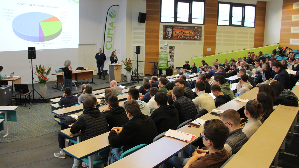L’Union des cuma des Pays de Loire s’est dotée d’un projet politique, qui couvre trois grands domaines. A savoir : l’appui aux cuma et à la vie du réseau, installation et dynamique de territoire, veille et innovation. Les étudiants d’une classe de BTS du Campus de Pouillé ont mené l’enquête auprès de 72 cuma pour connaître leurs besoins concrets autour de ces trois axes. Ils en ont rendu compte avec leur enseignante Justine Desruelle le 26 janvier lors de l’assemblée de section du Maine-et-Loire. Un événement qui avait lieu dans leur établissement, rien de mieux pour rendre les cuma plus familières aux futurs agriculteurs et salariés agricoles.