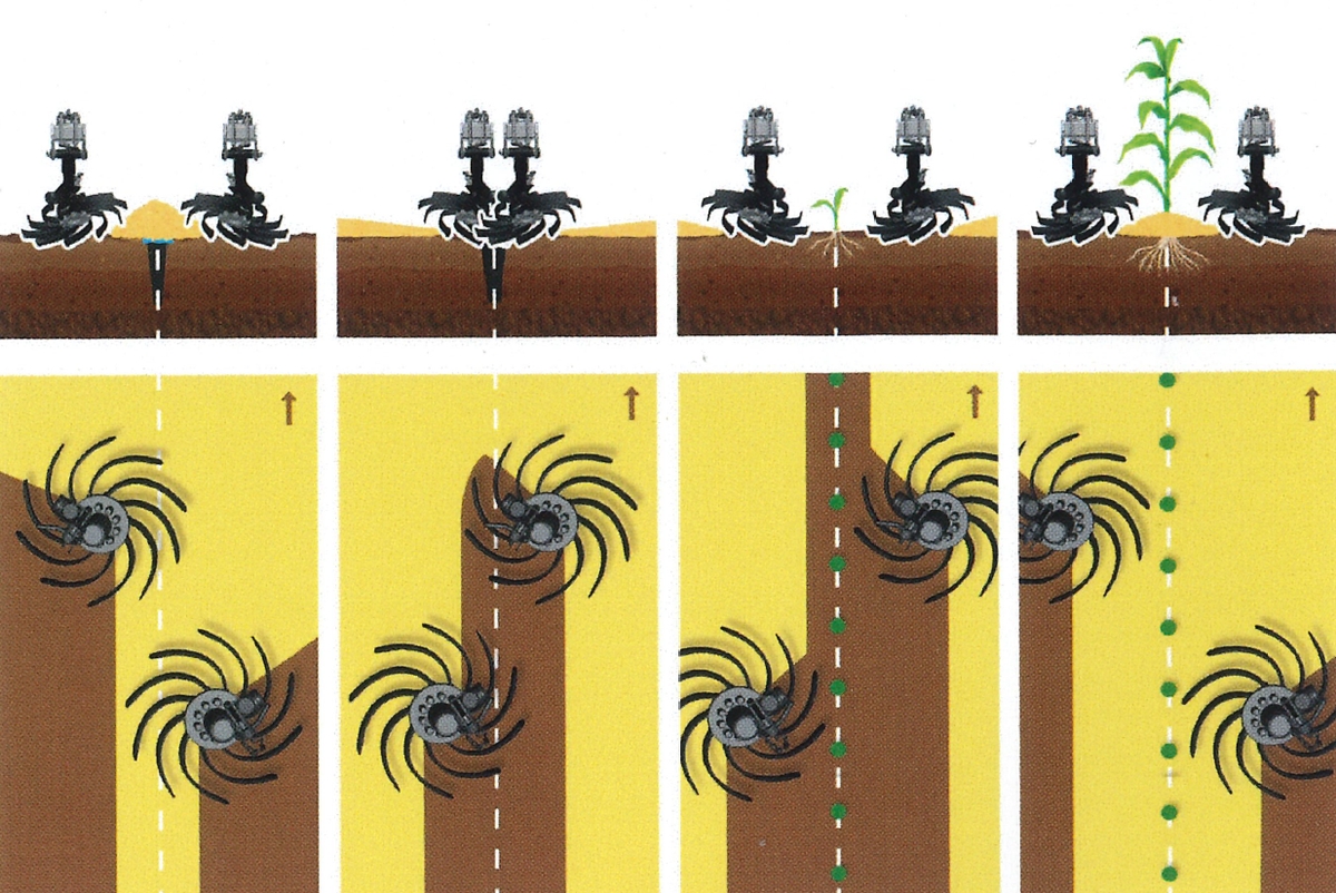 Le rotor Busa est également auto-animé. En revanche, il reçoit des lames forgées cintrées, installées à la verticale. Le constructeur a développé différentes applications : préparation de lit de semence, déchaumage, désherbage mécanique. Il propose même d’en faire un strip-till, en association avec un outil à dents. Il peut alors former des buttes ou travailler à plat, selon le réglage.