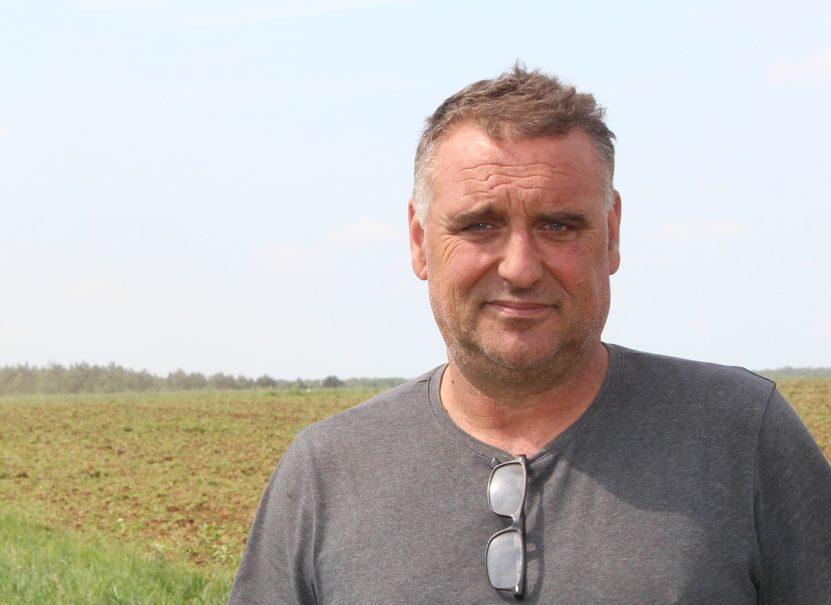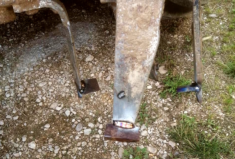 « J’avais vu sur les réseaux sociaux que certains employaient une herse rotative avec des dents munies d’une lame horizontale et j’ai essayé », indique-t-il. Un concessionnaire proche a mis à sa disposition une Kuhn HR 4003 de 4 m d’occasion. « J’ai coupé les dents usées toutes à la même longueur, ajoute-t-il, et soudé dessus des sections de lame d’acier biseautée, presque à l’horizontale. Il faut prendre un acier pas trop dur, sinon les lames se cassent sur les cailloux. »