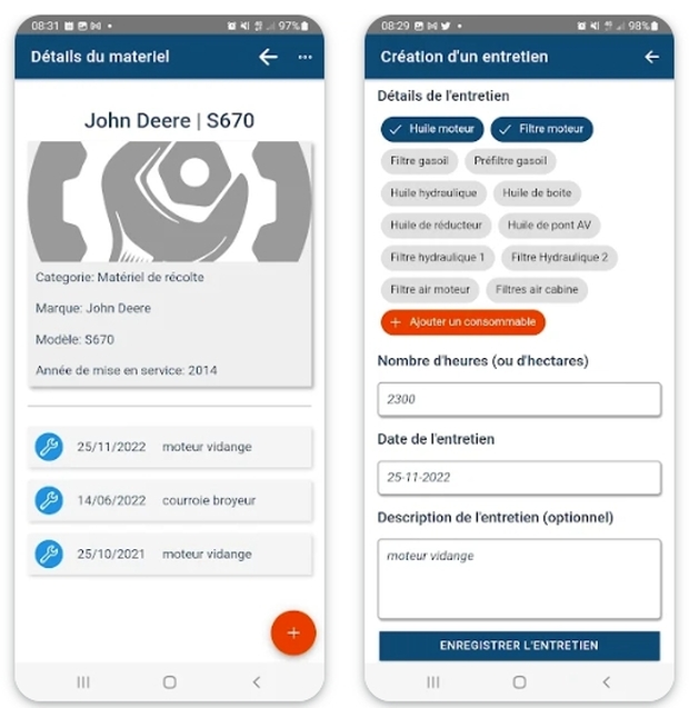 Pour mieux organiser l’entretien des matériels agricoles, un jeune agriculteur d’Eure-et-Loir a eu l’idée d’une application. Il l’a nommée Upkipp, et le principe est simple. Dans un premier temps, l’agriculteur enregistre son parc de tracteurs, autres automoteurs et matériels attelés. En fait, il doit juste cocher dans des listes de marques et de modèles préétablies. Ensuite, il renseigne les périodicités de vidange, de graissage ou de remplacements périodique de pièces d’usure.