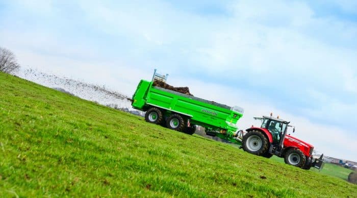 Pour le fond mouvant, les lattes en U fixées aux chaînes se déplacent sur des profilés plats permettant de limiter les détériorations du fond de caisse. La distance entre le tapis et les hérissons a été raccourcie pour arriver à un épandage encore plus régulier.