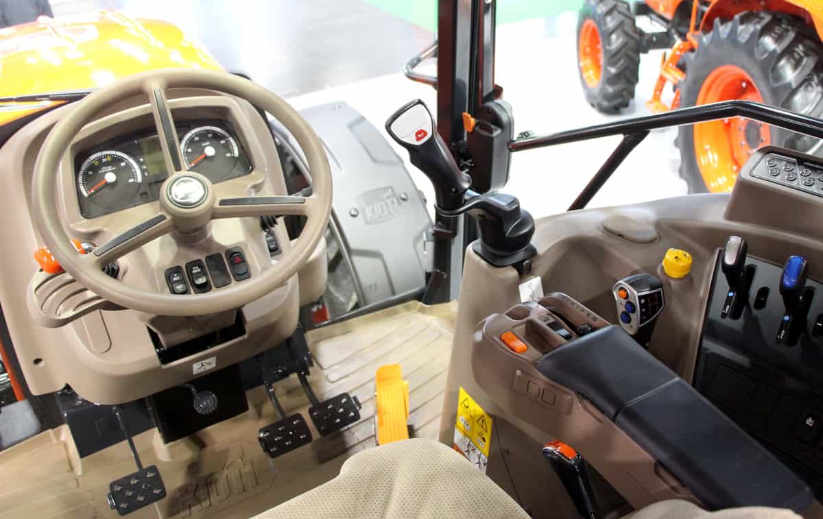 Le moteur de 3,8l pour 4 cylindres répond au stage V avec un catalyseur, une vanne EGR et l’injection d’AdBlue (pas de filtre à particules). Le transmission 32+32 compte 4 rapports, 4 gammes, ainsi qu’un doubleur et un inverseur sous charge. Une gamme rampantes fait d’ailleurs partie du pack de base. Une version semi-powershift équipera la suite de la série, en 130 et 140ch, fin 2032. L’hydraulique délivre quant à elle 75l/min pour les équipements de travail. Kioti peut par ailleurs livrer ses tracteurs avec un chargeur monté d’usine. Il se pilote grâce au joystick présent d’origine dans la cabine.