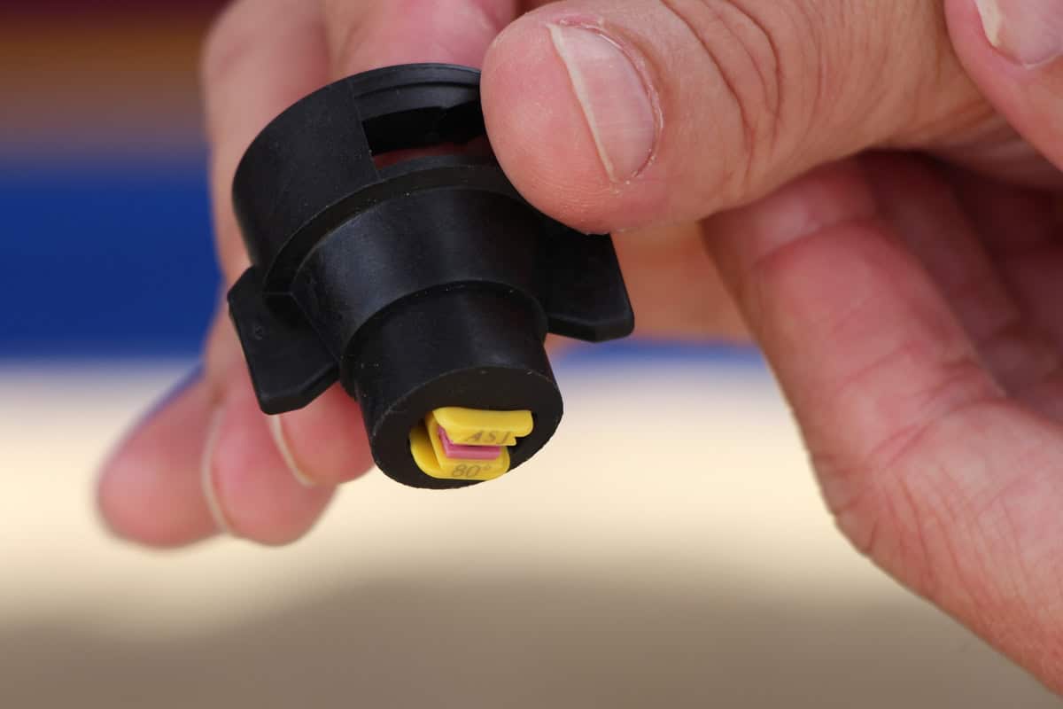 Syngenta accompagne les agriculteurs voulant réduire leur IFT en désherbant uniquement sur le rang. Soit au semis, au binage ou encore avec une rampe dédiée. Les buses employées jusque-là à cette tâche ne bénéficient pas forcément d’une homologation contre la dérive. Or, avec les ZNT, il faut cocher cette case. Syngenta a donc développé avec Solhead un écrou porte buse qui donne un angle à celle-ci par rapport à l’avancement. Sa largeur de projection se trouve ainsi réduite. La classique buse 110° homologuée ZNT peut ainsi travailler sur seulement 20 ou 40cm, selon l’écrou choisi. Le conseil technique pour finaliser le choix du calibre de buse et des conditions d’emploi se matérialisera prochainement dans une appli.