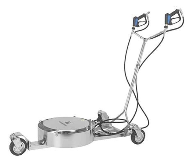Dénommé Mosmatic Hurricane, cet équipement repose sur trois roues folles. Il possède une paire de buses montées sur un bras rotatif, dirigées vers le haut. Elles couvrent un diamètre de 53 ou 76 cm. En complément, un capot de protection recueille les débris qui tombent pour protéger le mécanisme. D’autre part, sur la version pro, l’ensemble peut pivoter pour projeter latéralement l’eau sous pression.
