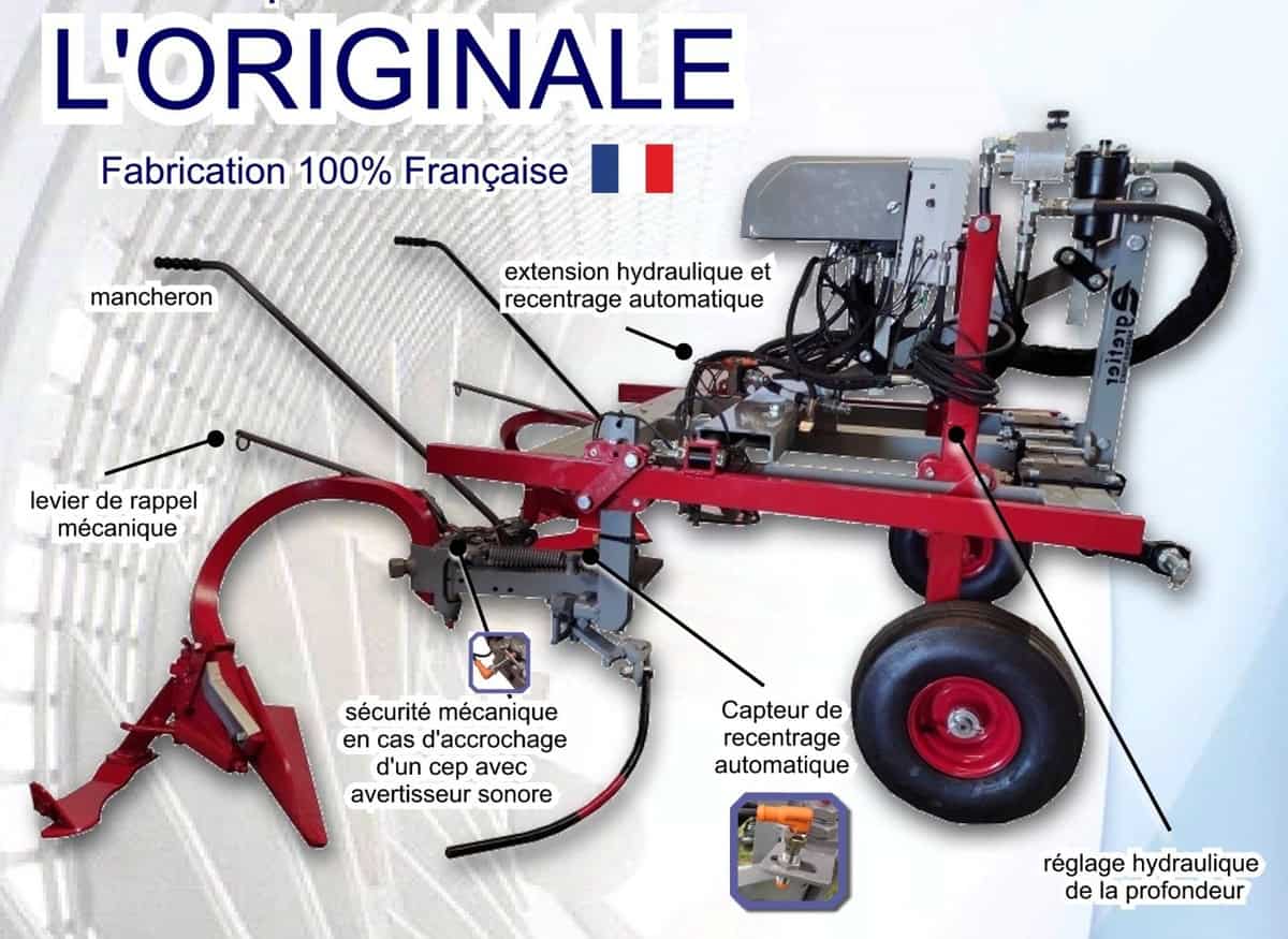 - Egretier Jean-Michel: L’Originale, matériel de désherbage mécanique sous le rang en viticulture, comprenant un cadre pour interceps, avec recentrage automatique, et sécurité par effacement en cas de contact avec un cep. Le conducteur n’a plus à se retourner sans cesse pour surveiller son travail, un buzzer signalant tout déclenchement. Egalement Prix MSA de la prévention à Dionysud 2022.