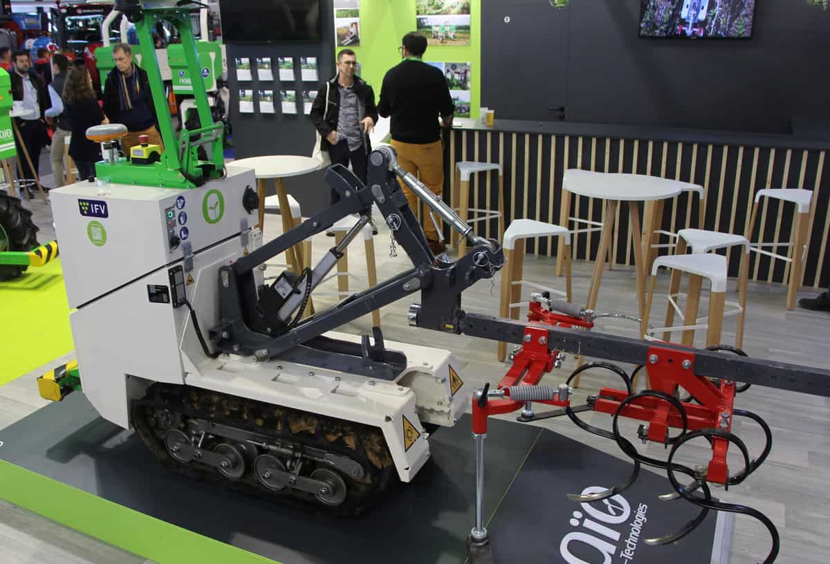 - Naïo Technologies : Jo, chenillard autonome pour les vignobles à haute densité et pentus (type viticulture en Champagne). Déjà vendu à 19 exemplaires, il est spécialisé dans le contrôle de l’enherbement et des adventices. Autonomie jusqu’à 12h.