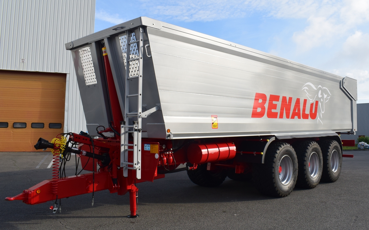 Benalu-Legras crée de son côté une gamme de bennes agraires avec châssis et caisse en aluminium, l’Agrialu. Deux longueurs de caisse : 8,80 et 9,50 m, pour des volumes de 33 à 50 m3 et un poids à vide à partir de 7,5 t. Suspension à air ou à lames.
