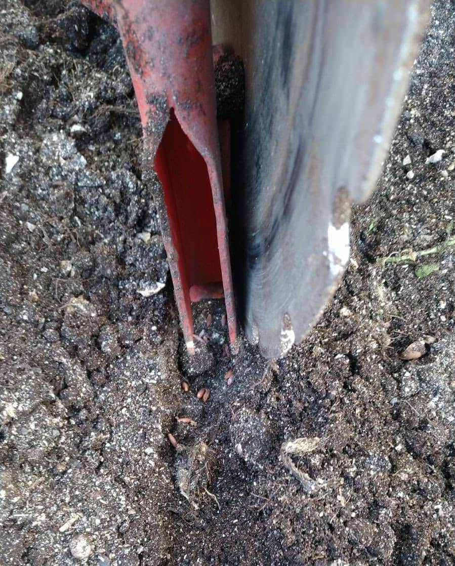 La mise en terre de l’Agriseeder fait appel à un disque cranté assez incliné ouvrant le sol en créant de la terre fine. Un coutre accolé à l’arrière dépose les graines. Le disque bénéficie d’une suspension par boudins en caoutchouc. Mais en plus, la largeur de travail se divise en plusieurs sections indépendantes. Chacun dispose d’un vérin de terrage hydraulique. De plus, les trois vérins sont en série pour compenser les inégalités du sol.