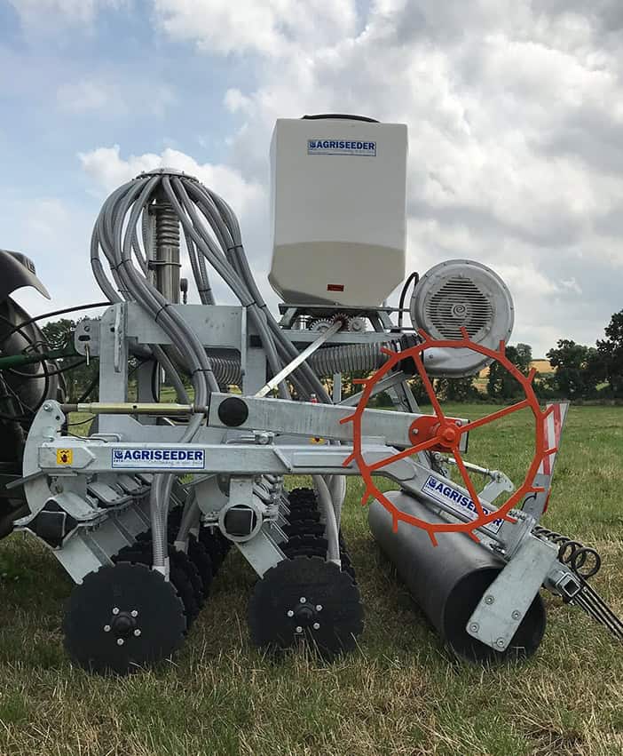 Déméterre importe en France un semoir à prairies irlandais appelé Agriseeder. La filiale de la coopérative Terre Comtoise a choisi cet appareil pour sa polyvalence. En effet, il peut travailler en sur-semis sur un couvert en bon état, mais également en réfection d’une prairie dégradée par les rongeurs. Le semoir est également capable d’intervenir sur un sol travaillé, et d’implanter des céréales.