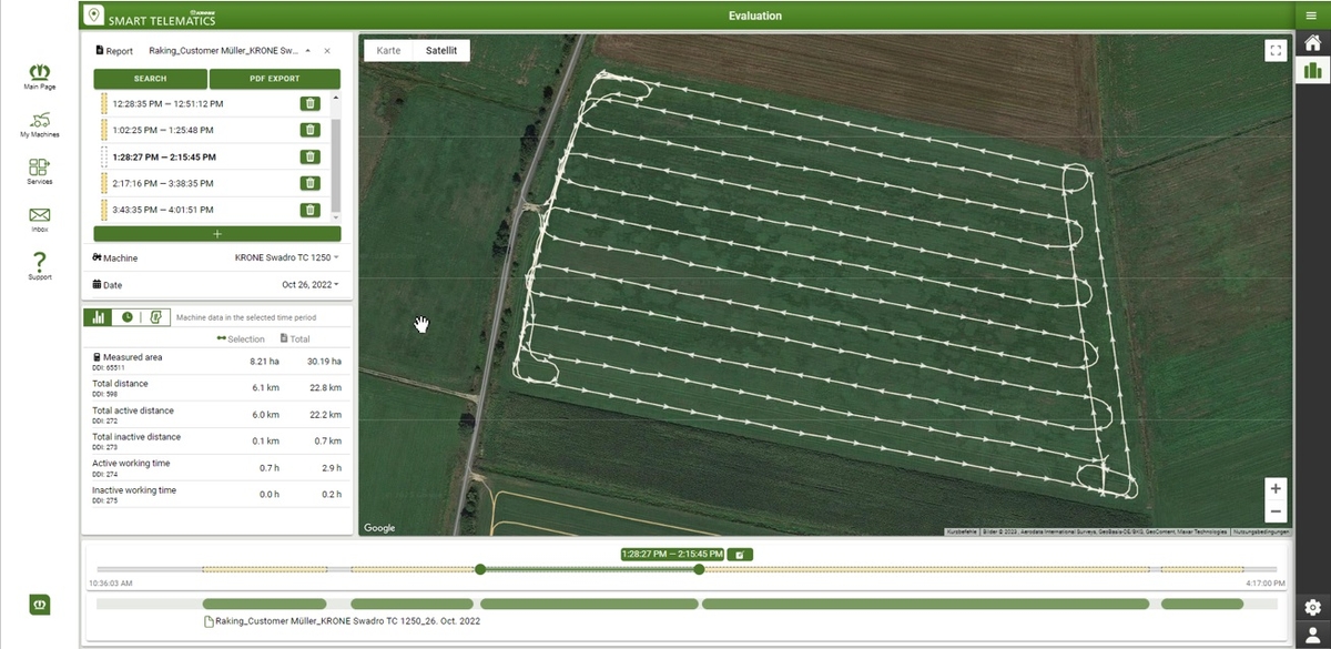 C’est l’application Krone Smart Telematics qui permet ensuite à l’utilisateur de retrouver ses données ou celles de la cuma. Krone précise que prix d’achat «inclut tous les frais de fonctionnement: téléphonie mobile et utilisation du portail, ainsi que deux supports de montage pour l’installation du module sur la machine». Les données peuvent d’autre part remonter vers l’application Agrirouteur, employée par de nombreux constructeurs et éditeurs de logiciels de gestion.